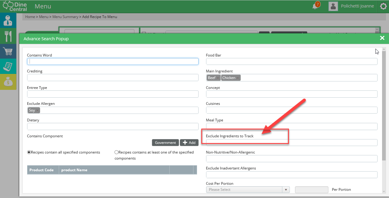 Exclude Ingredients To Track refers to a special list of ingredients that you may want to avoid using (i.e. High Fructose Corn Syrup, MSG, etc.)
