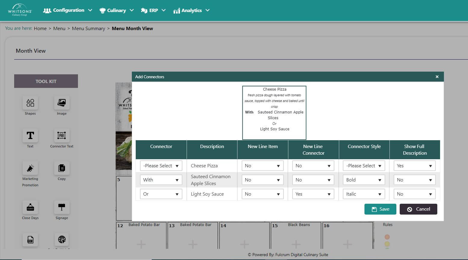 When you like the connector text, click Save and close the popup screen.