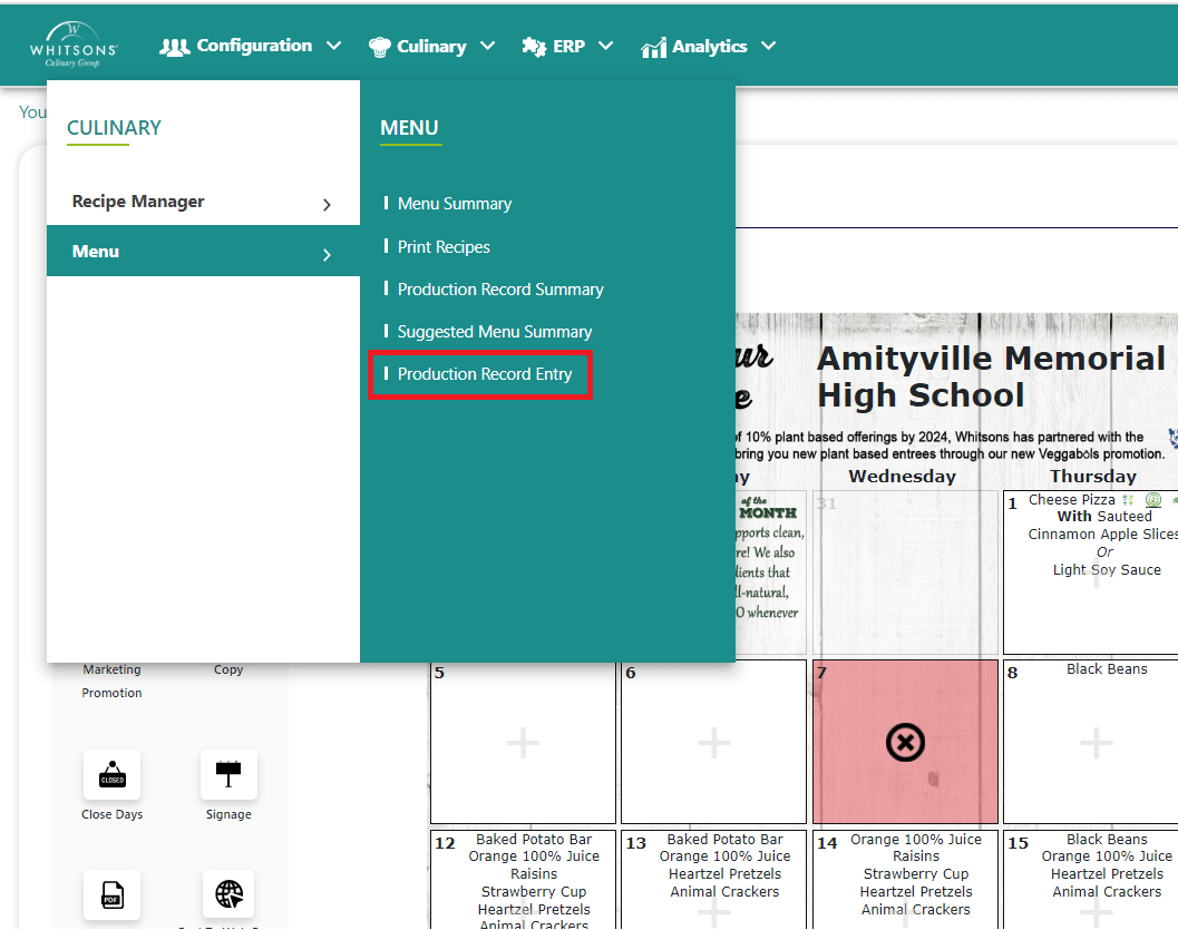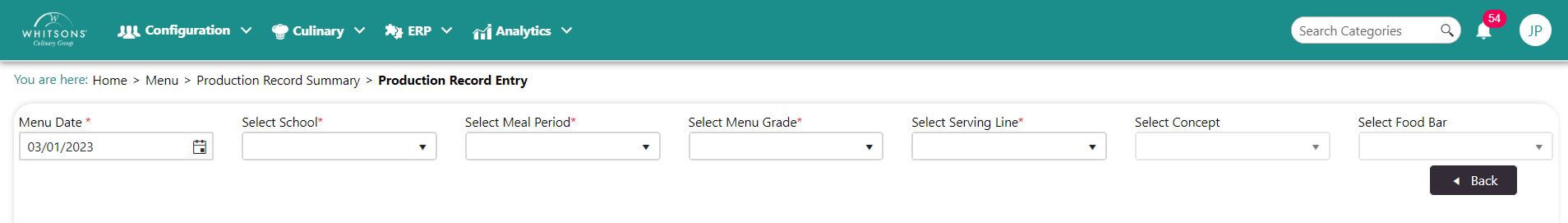 You can also filter the production record by food bar (if there is a food bar on the menu) and enter the data for the items that are specific to the food bar.