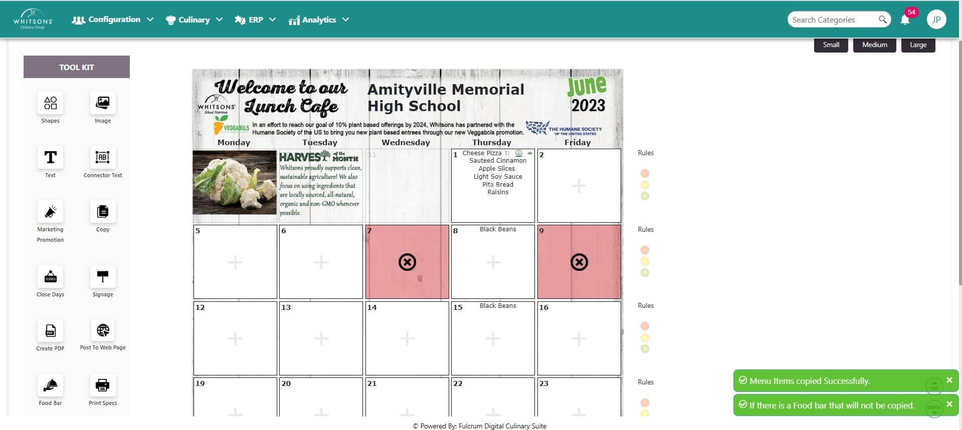 You will receive a confirmation message. Click on the menu for the pasted day to view the menu details.
