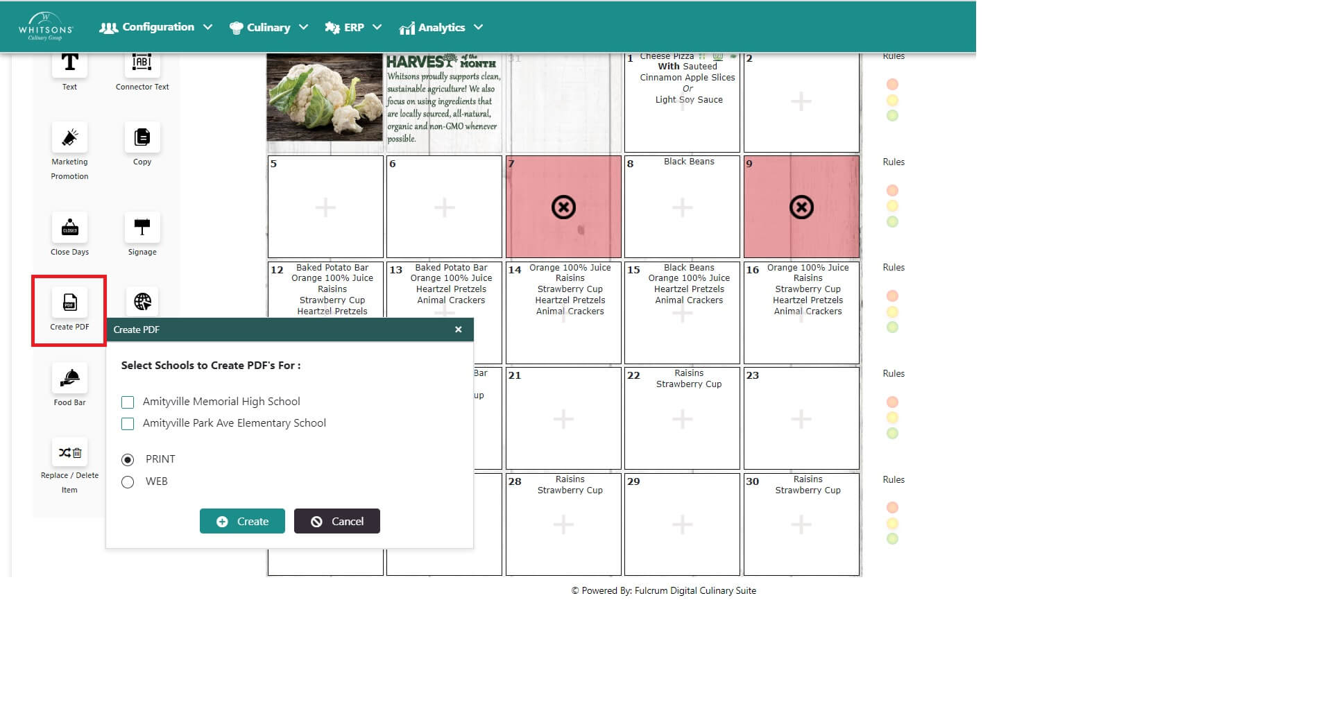 Select the Print button for the system create a PDF of the Menu for printing.