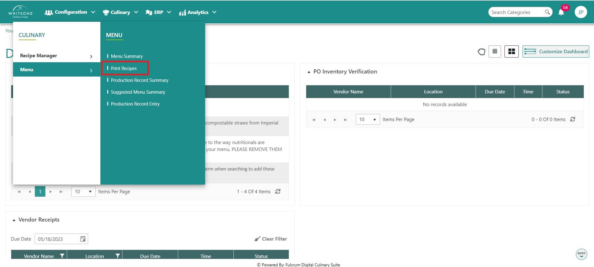 Print recipes for only items to show on the menu