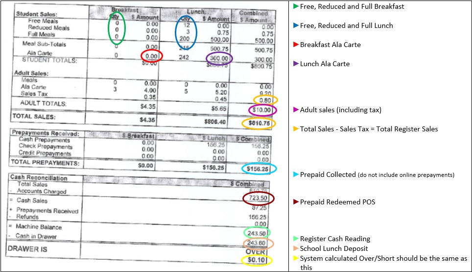 Use the legends below to help map the items on your POS report to the fields in Dine Central.