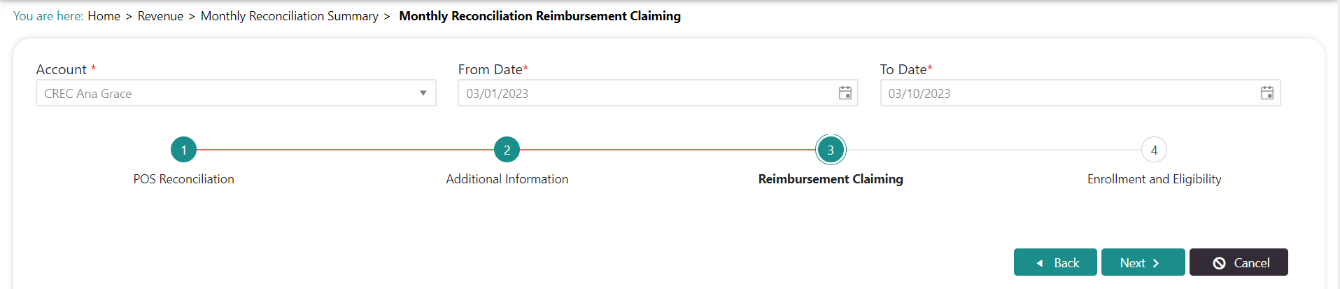 Click Next to move to Step 3: Reimbursement Claiming.