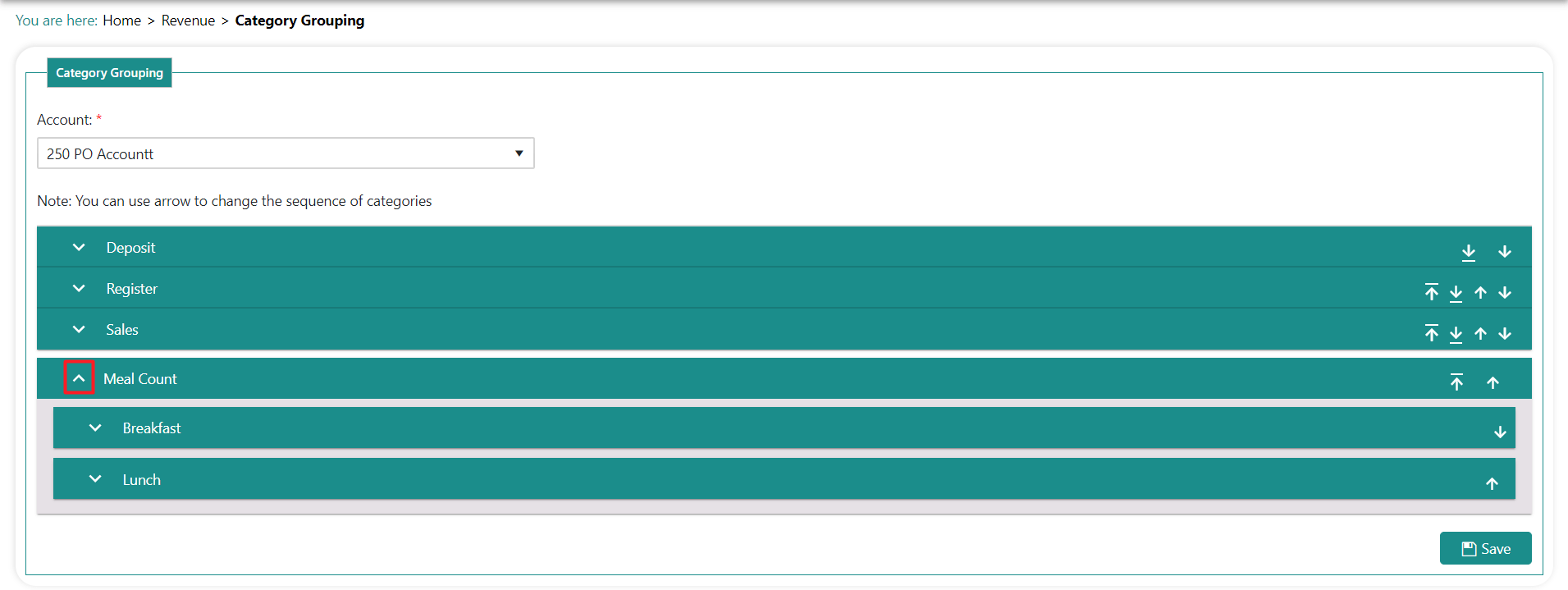 Click the arrows to the right of each sub category to re-arrange the order as needed.