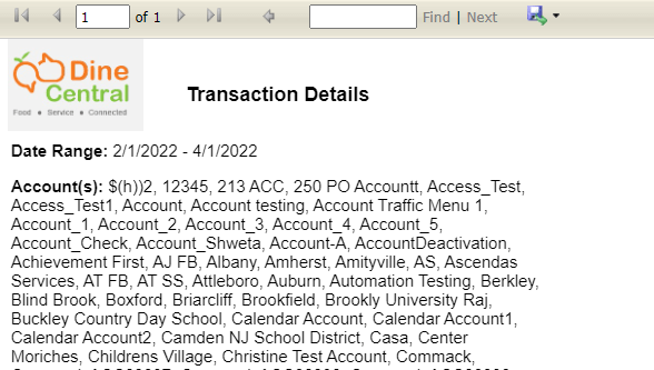The Transaction Details report displays information about all transaction for your accounts/locations. You can choose to run the report in either detail or summary mode. Detail mode shows the transactions for each date in the date range and can be useful when finding discrepancies during reconciliation. Summary mode shows the totals of each category/price for all dates summed together.