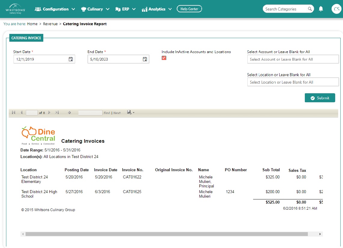 You can view a list of catering invoices that have been finalized using the Catering Invoice report.